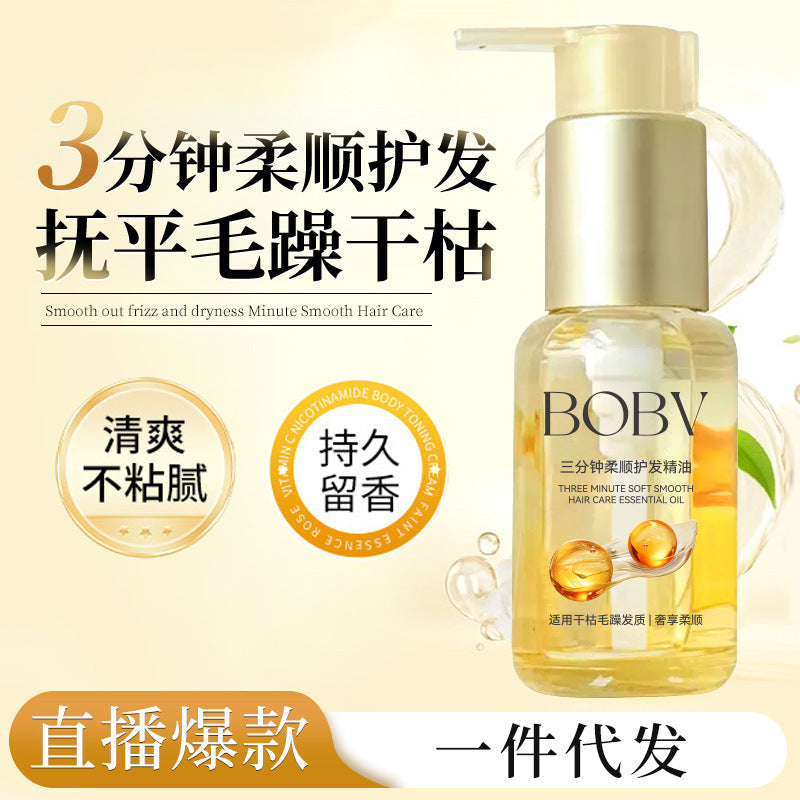 Transform your hair care routine with the Bobv Three-Minute Smooth Hair Care Essential Oil Spray, specially formulated to smooth frizz, repair damaged hair, and hydrate chemically treated strands. 🌸💧 Perfect for hair that’s been permed, dyed, or exposed to heat, this quick-acting spray restores shine, softness, and manageability in just minutes.
