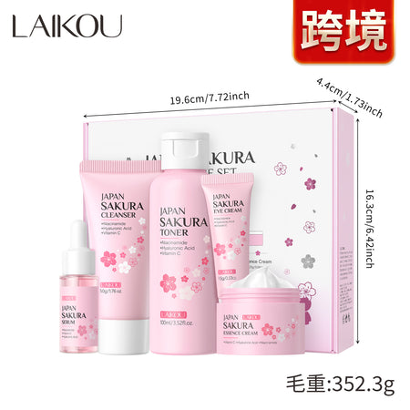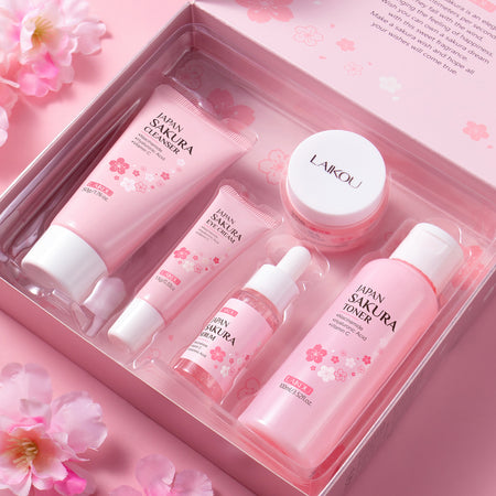 Experience the beauty of cherry blossoms with the Laikou Sakura 5-Piece Skin Care Gift Box, a complete facial care kit designed to keep your skin hydrated, soft, and radiant. 🌸✨ Infused with sakura (cherry blossom) essence, this set delivers gentle nourishment, improves skin elasticity, and restores a fresh glow—perfect for daily use.