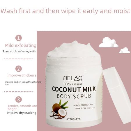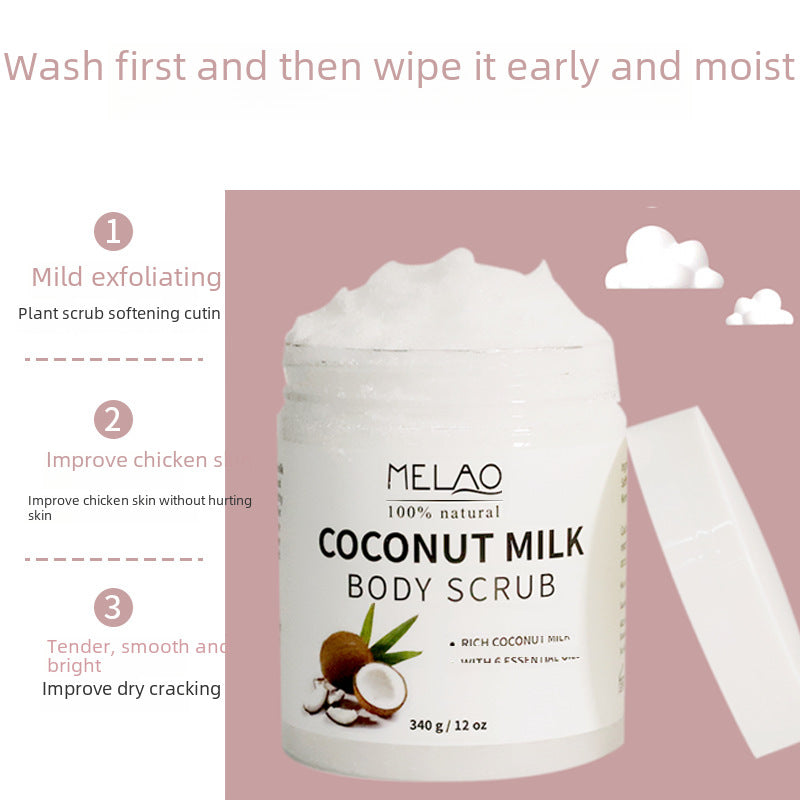 Indulge your skin in tropical luxury with the MELAO Coconut Milk Body Scrub – your new go-to for smooth, glowing, and baby-soft skin! 🛁✨