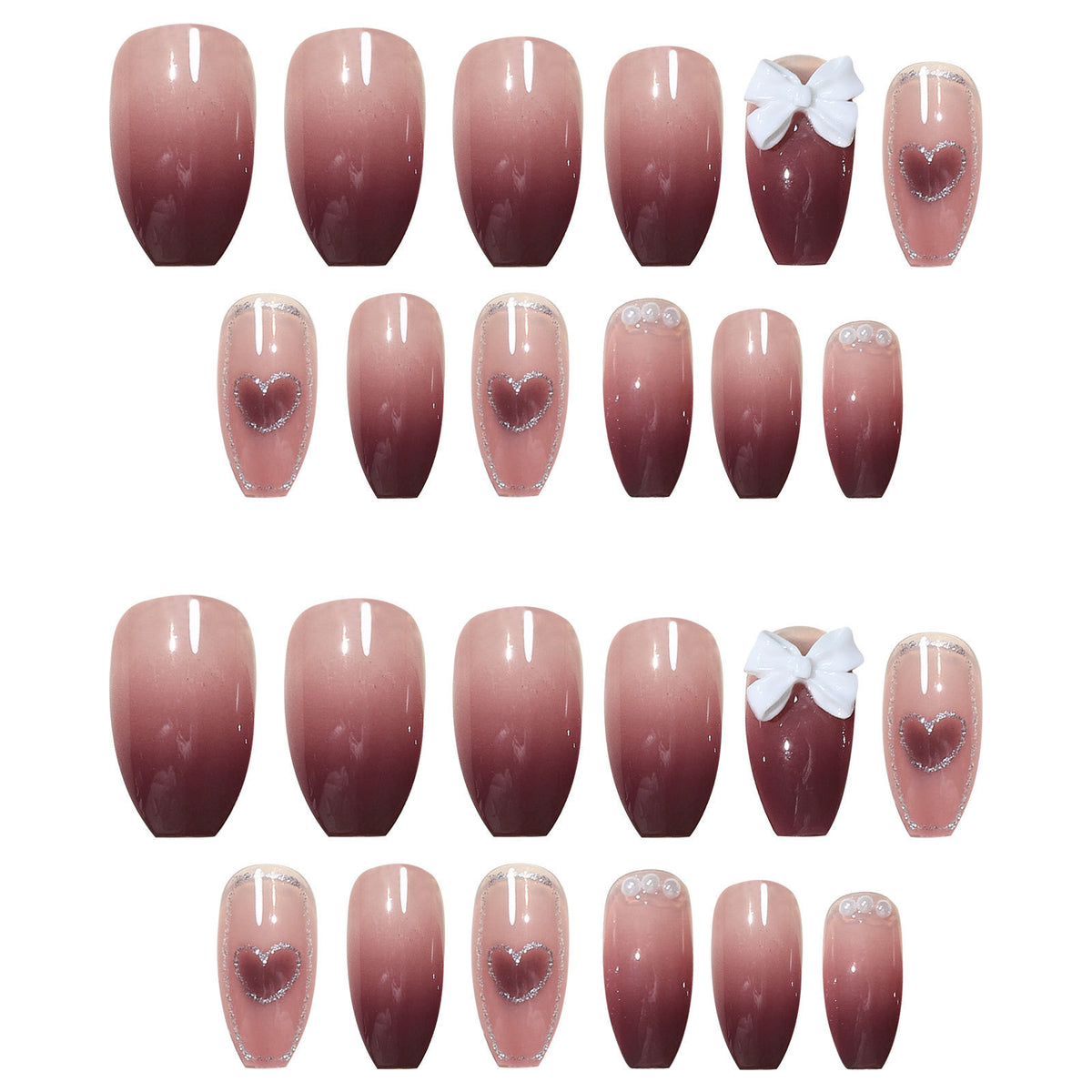 Removable Short Fake Nails β Cute Bow Nail Patch Set